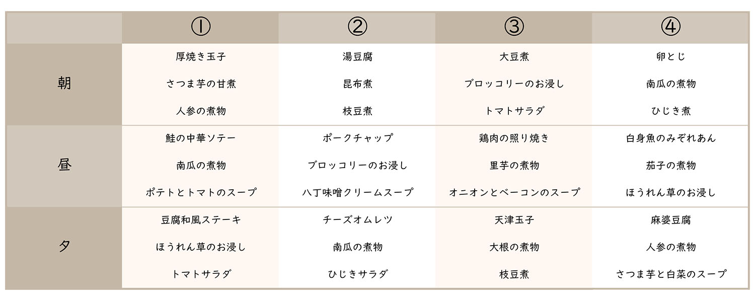 3食×7日間分です。【1週間の献立メニュー1~7】 ※画像をクリックすると拡大します![]() ![]() |