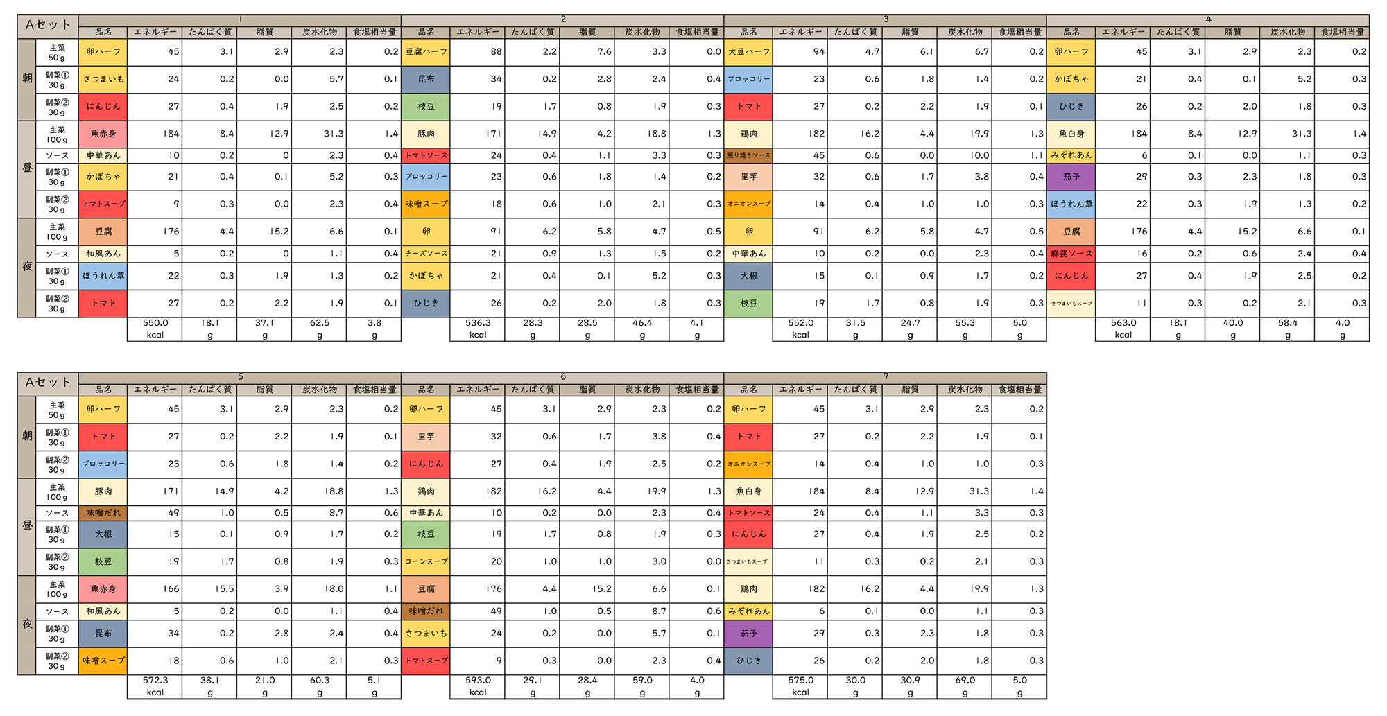 ![]() 満足セットA (献立1~7) |