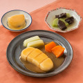 主菜:鶏の照焼き風 付け合わせ:長ねぎ、 人参 副菜:きゅうりとひじきの酢の物 副菜:ふろふき大根 |