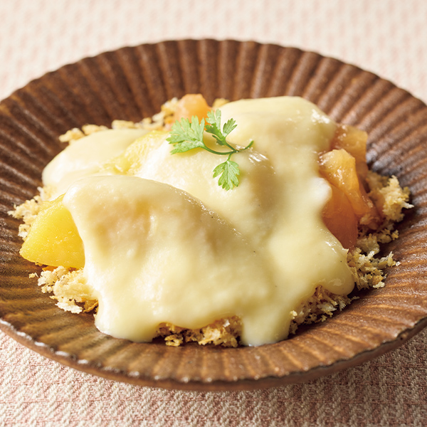 焼き上げたパン粉の上に、さつま芋とリンゴ、カスタードクリームを重ね、パイ風に仕上げました。