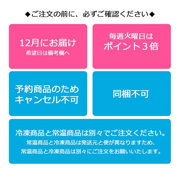 2025年12月22日(月)~12月28日(日) ※ヤマト運輸クール便(冷凍)でのお届けとなります。 ※期間外のお届けは出来かねますのでご了承ください。 ※期間中のご希望のお届け日がございましたら備考欄にお書き下さい。記載がなければ上記期間中いずれかにお届けいたします。 数量限定のため、メーカー在庫がなくなり次第終了です。 |